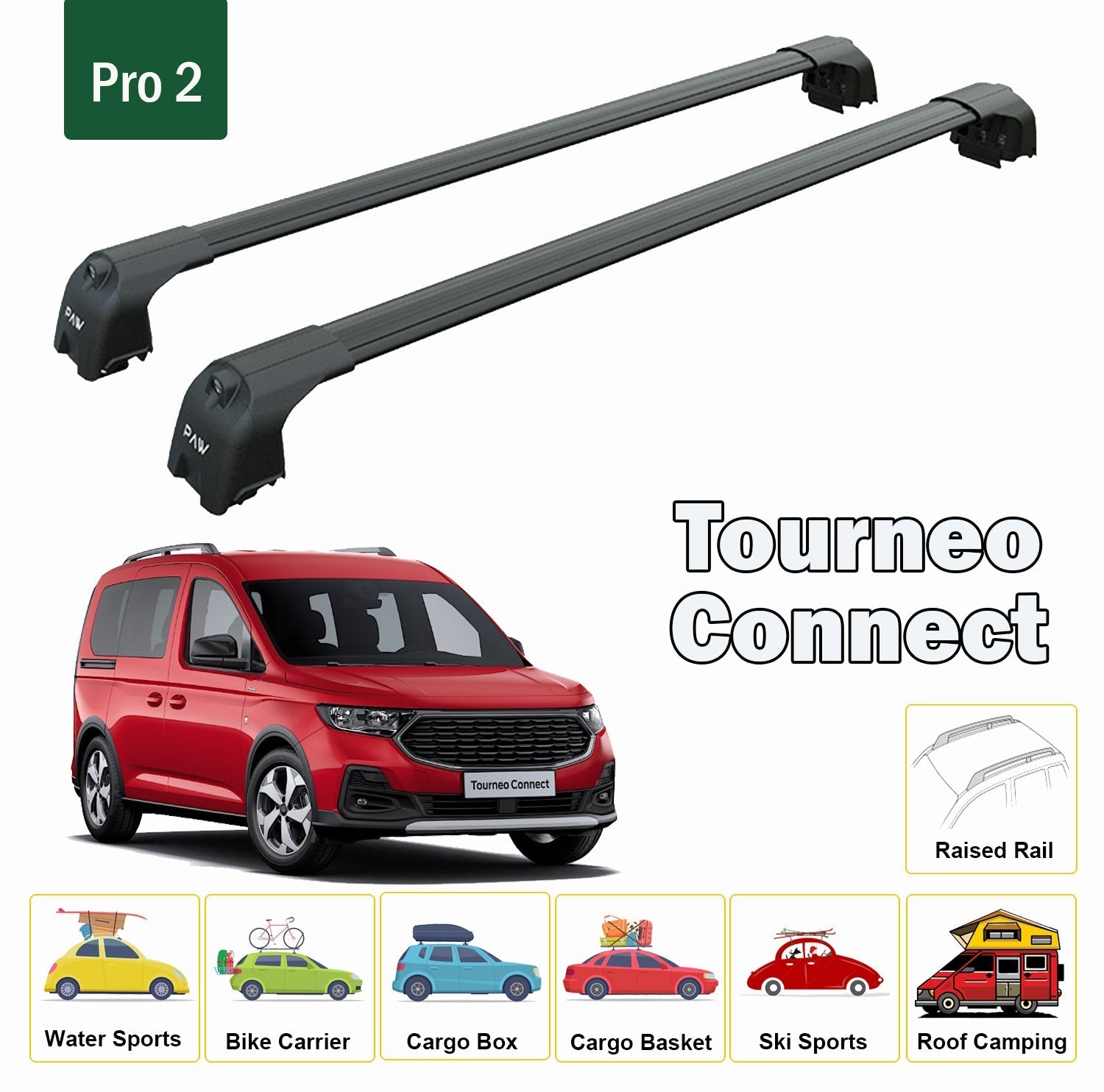 Tourneo Connect Roof Rack Cross Bars Raised Rail Alu 2024- Up Black